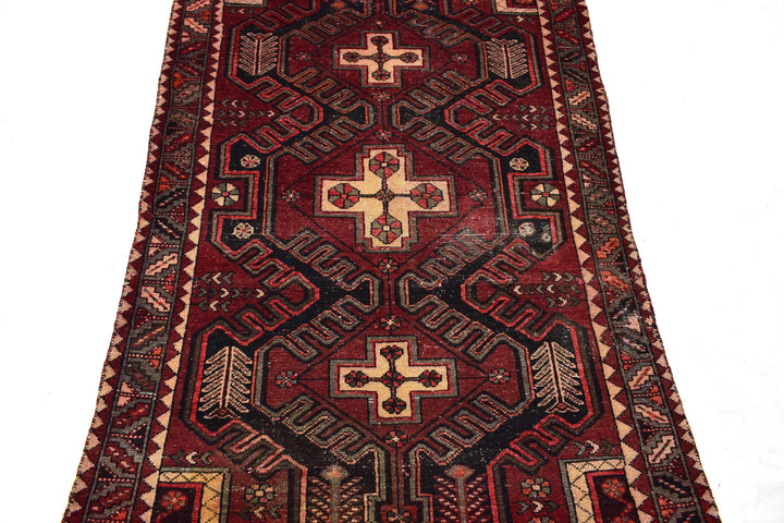 The vintage rugs in our collection have a rich and deep color palette and feature the characteristic design of a central pole medallion interspersed with geometric patterns and symmetrical shapes. Across their borders are often smaller bands encompassing a larger band with palm and leaf designs. A common theme in these rugs is geometric floral motives in various colors.