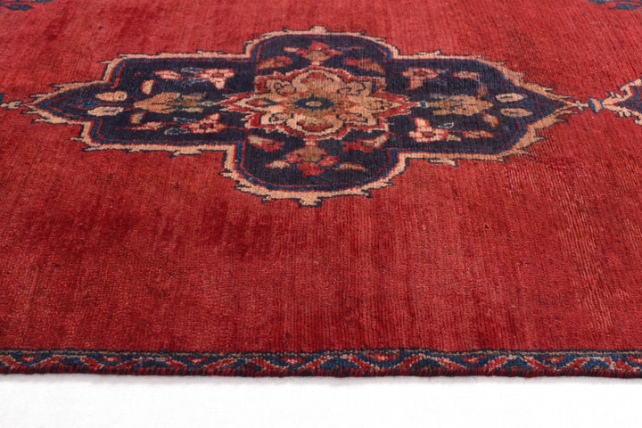 The vintage rugs in our collection have a rich and deep color palette and feature the characteristic design of a central pole medallion interspersed with geometric patterns and symmetrical shapes. Across their borders are often smaller bands encompassing a larger band with palm and leaf designs. A common theme in these rugs is geometric floral motives in various colors.