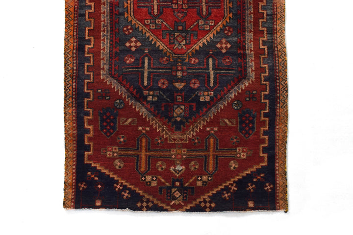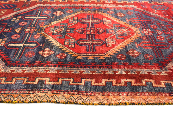 The vintage rugs in our collection have a rich and deep color palette and feature the characteristic design of a central pole medallion interspersed with geometric patterns and symmetrical shapes. Across their borders are often smaller bands encompassing a larger band with palm and leaf designs. A common theme in these rugs is geometric floral motives in various colors.