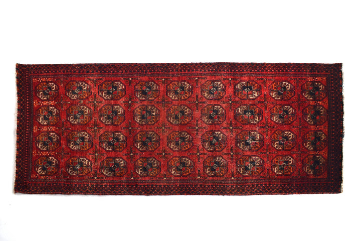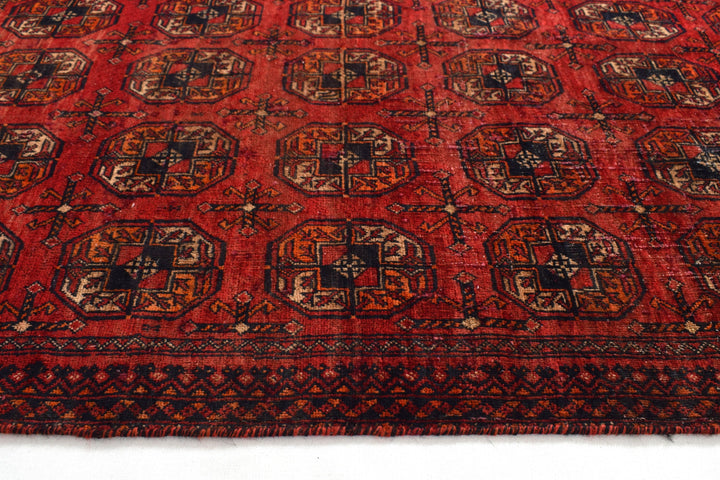 The vintage rugs in our collection have a rich and deep color palette and feature the characteristic design of a central pole medallion interspersed with geometric patterns and symmetrical shapes. Across their borders are often smaller bands encompassing a larger band with palm and leaf designs. A common theme in these rugs is geometric floral motives in various colors.