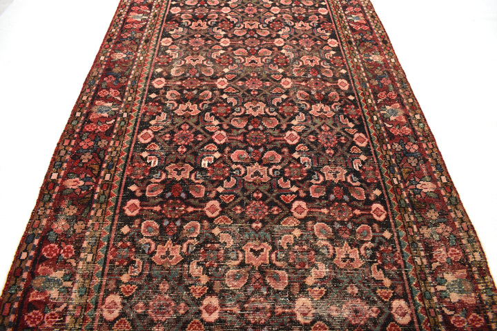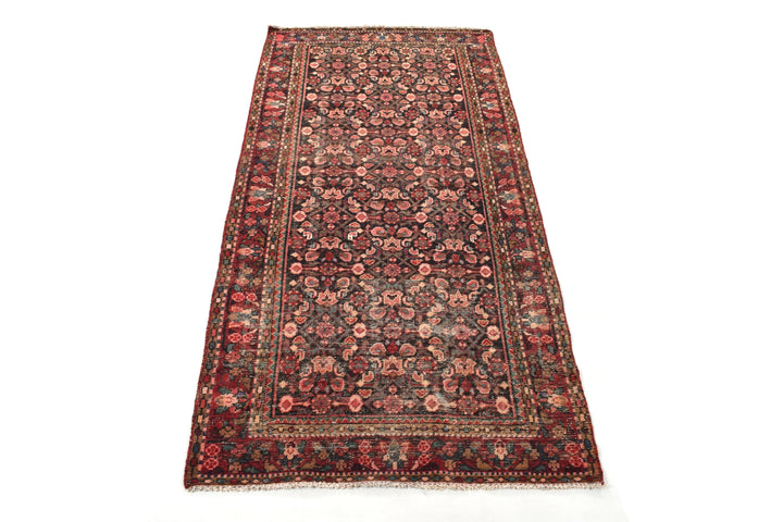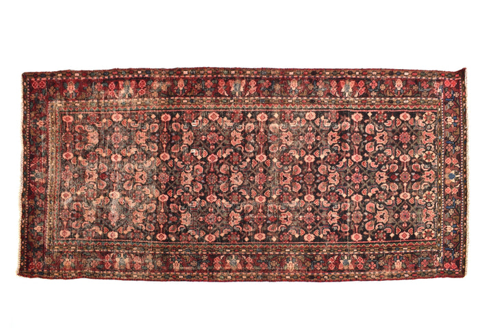 The vintage rugs in our collection have a rich and deep color palette and feature the characteristic design of a central pole medallion interspersed with geometric patterns and symmetrical shapes. Across their borders are often smaller bands encompassing a larger band with palm and leaf designs. A common theme in these rugs is geometric floral motives in various colors.