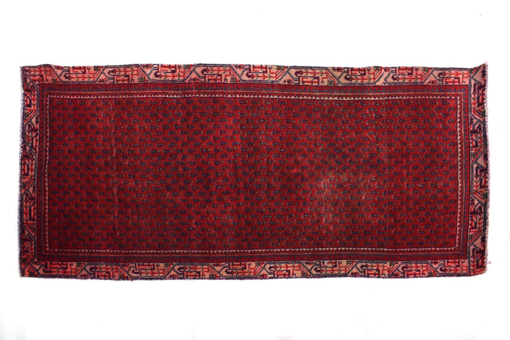 The vintage rugs in our collection have a rich and deep color palette and feature the characteristic design of a central pole medallion interspersed with geometric patterns and symmetrical shapes. Across their borders are often smaller bands encompassing a larger band with palm and leaf designs. A common theme in these rugs is geometric floral motives in various colors.