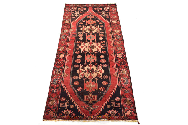 The vintage rugs in our collection have a rich and deep color palette and feature the characteristic design of a central pole medallion interspersed with geometric patterns and symmetrical shapes. Across their borders are often smaller bands encompassing a larger band with palm and leaf designs. A common theme in these rugs is geometric floral motives in various colors.