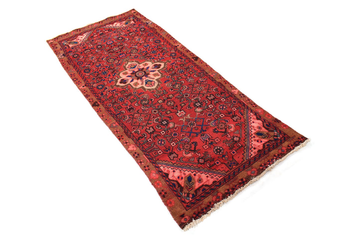 The vintage rugs in our collection have a rich and deep color palette and feature the characteristic design of a central pole medallion interspersed with geometric patterns and symmetrical shapes. Across their borders are often smaller bands encompassing a larger band with palm and leaf designs. A common theme in these rugs is geometric floral motives in various colors.