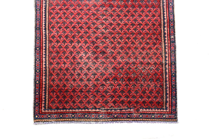 The vintage rugs in our collection have a rich and deep color palette and feature the characteristic design of a central pole medallion interspersed with geometric patterns and symmetrical shapes. Across their borders are often smaller bands encompassing a larger band with palm and leaf designs. A common theme in these rugs is geometric floral motives in various colors.