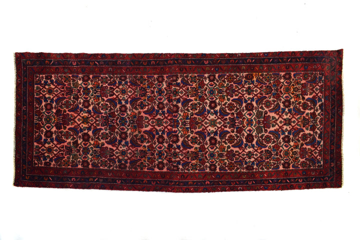 The vintage rugs in our collection have a rich and deep color palette and feature the characteristic design of a central pole medallion interspersed with geometric patterns and symmetrical shapes. Across their borders are often smaller bands encompassing a larger band with palm and leaf designs. A common theme in these rugs is geometric floral motives in various colors.