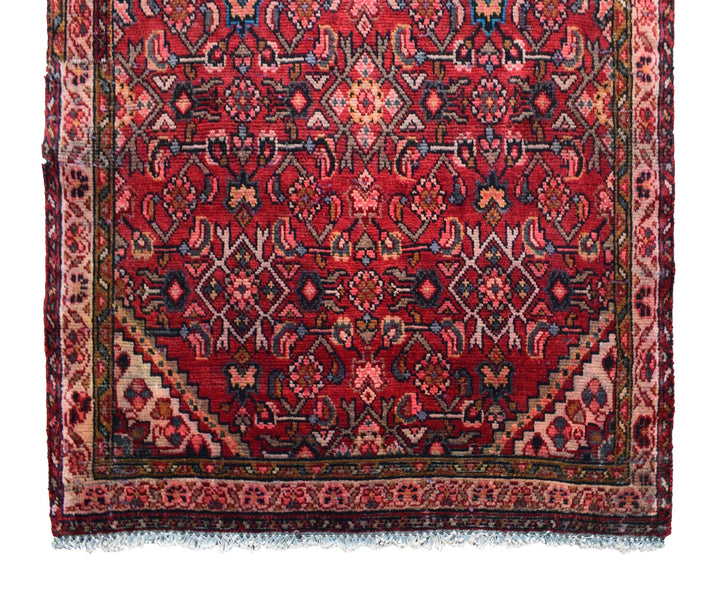 The vintage rugs in our collection have a rich and deep color palette and feature the characteristic design of a central pole medallion interspersed with geometric patterns and symmetrical shapes. Across their borders are often smaller bands encompassing a larger band with palm and leaf designs. A common theme in these rugs is geometric floral motives in various colors.