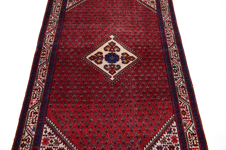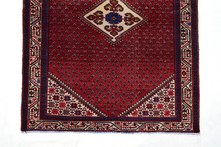 The vintage rugs in our collection have a rich and deep color palette and feature the characteristic design of a central pole medallion interspersed with geometric patterns and symmetrical shapes. Across their borders are often smaller bands encompassing a larger band with palm and leaf designs. A common theme in these rugs is geometric floral motives in various colors.