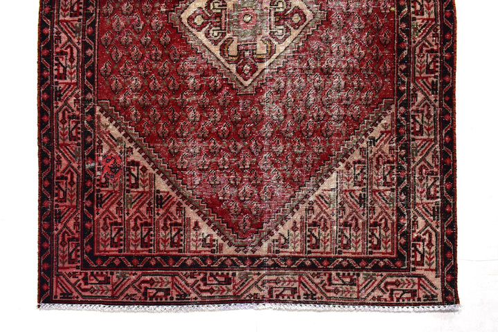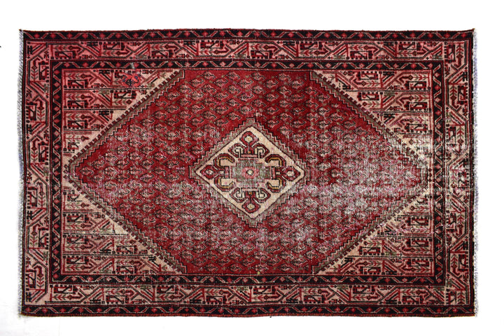 The vintage rugs in our collection have a rich and deep color palette and feature the characteristic design of a central pole medallion interspersed with geometric patterns and symmetrical shapes. Across their borders are often smaller bands encompassing a larger band with palm and leaf designs. A common theme in these rugs is geometric floral motives in various colors.