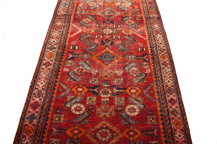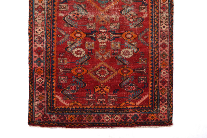 The vintage rugs in our collection have a rich and deep color palette and feature the characteristic design of a central pole medallion interspersed with geometric patterns and symmetrical shapes. Across their borders are often smaller bands encompassing a larger band with palm and leaf designs. A common theme in these rugs is geometric floral motives in various colors.