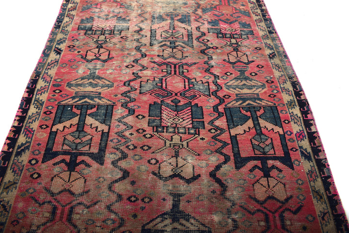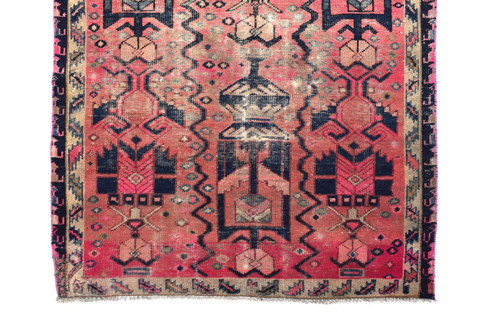 The vintage rugs in our collection have a rich and deep color palette and feature the characteristic design of a central pole medallion interspersed with geometric patterns and symmetrical shapes. Across their borders are often smaller bands encompassing a larger band with palm and leaf designs. A common theme in these rugs is geometric floral motives in various colors.