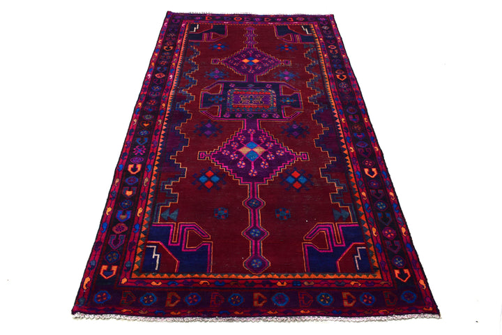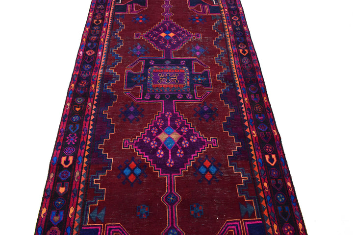 The vintage rugs in our collection have a rich and deep color palette and feature the characteristic design of a central pole medallion interspersed with geometric patterns and symmetrical shapes. Across their borders are often smaller bands encompassing a larger band with palm and leaf designs. A common theme in these rugs is geometric floral motives in various colors.