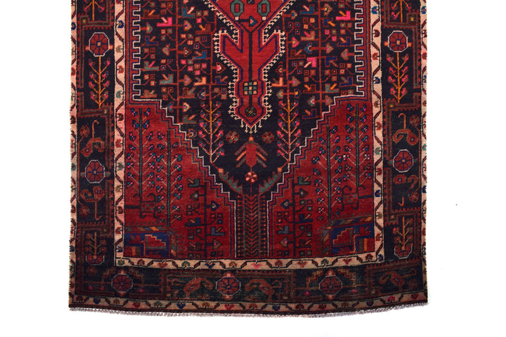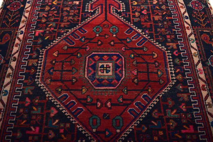 The vintage rugs in our collection have a rich and deep color palette and feature the characteristic design of a central pole medallion interspersed with geometric patterns and symmetrical shapes. Across their borders are often smaller bands encompassing a larger band with palm and leaf designs. A common theme in these rugs is geometric floral motives in various colors.